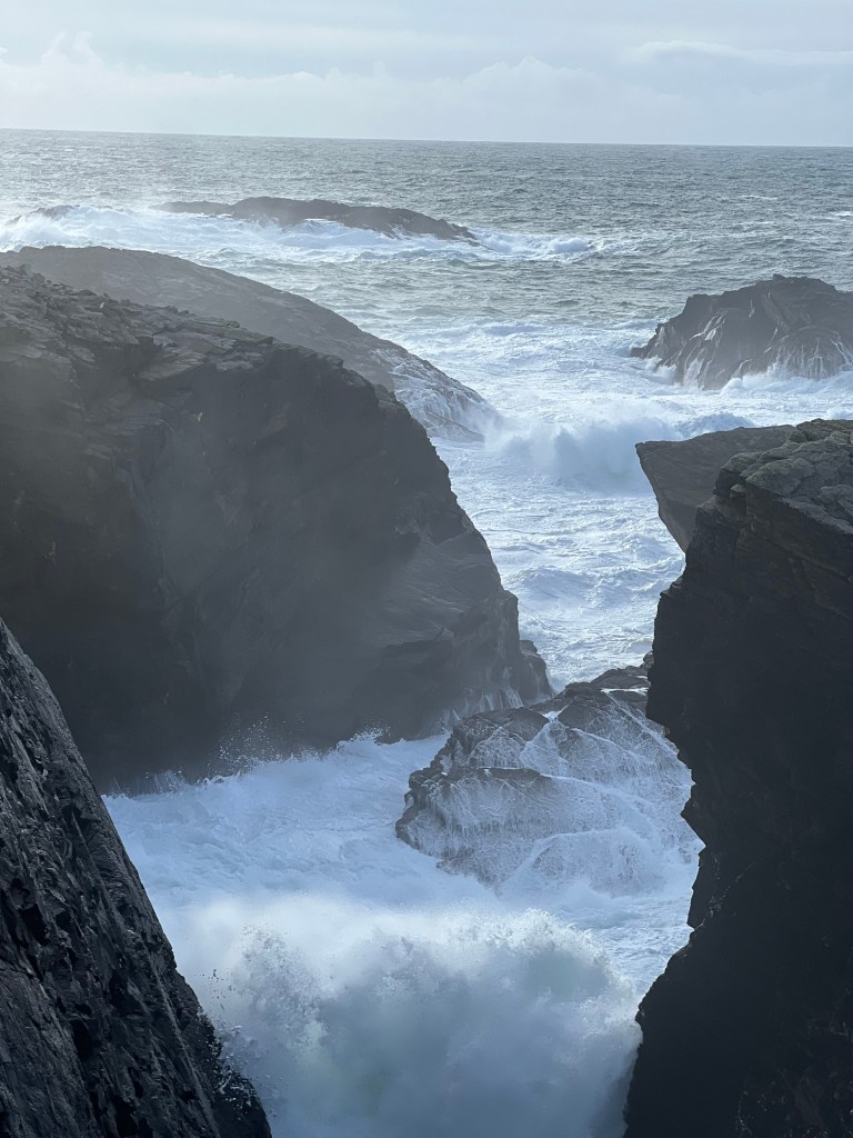 We explored the areas north and south of us along the Wild Atlantic Way, Ireland’s version of the Pacific Coast Highway, which runs the length of Ireland’s west coast. We visited the Connemara region and the beautiful, craggy coastline with massive powerful crashing waves. (Incidentally, we met a couple from New York and told them about our move to Ireland. They asked if we surfed, as if we moved from San Diego to Ireland for surfing??! 🏄🏻♂️🫤) Even though England is but a stone’s throw away, Jenny commented how unique Ireland’s landscapes are from England’s.