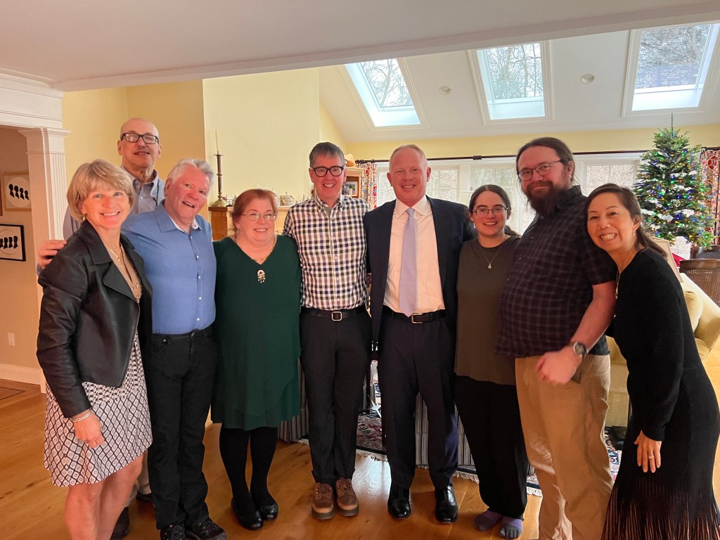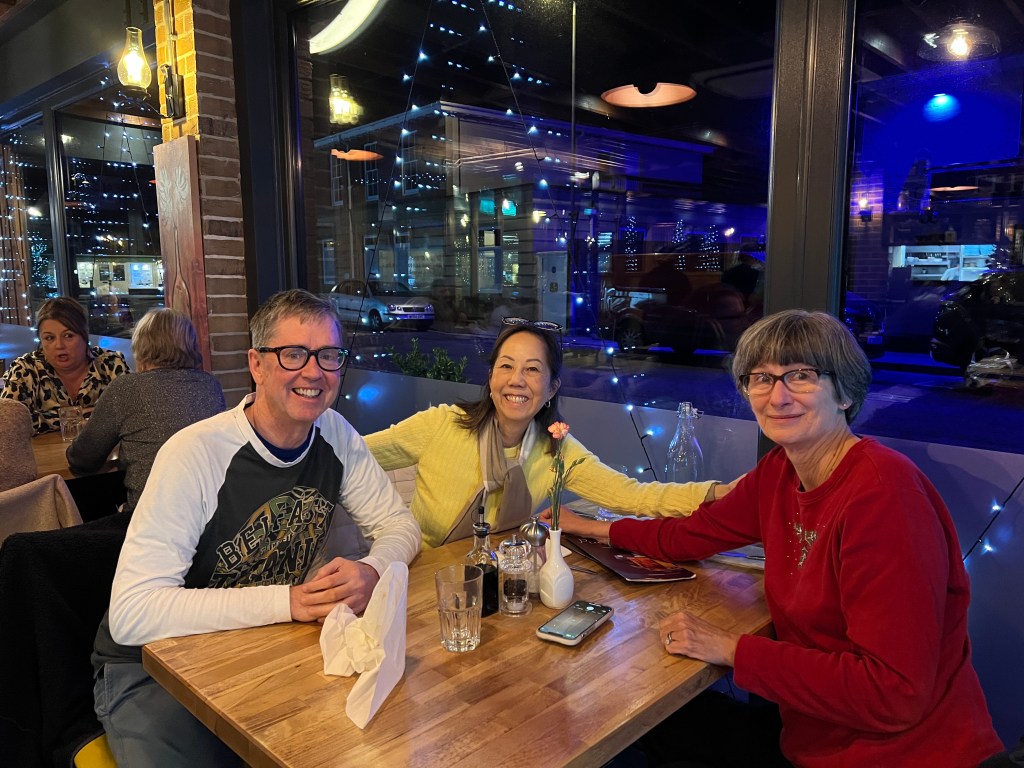 Across the Pond: We made a brief trip to New England in December for the memorial service of Eric’s Uncle George (age 93). We joined the cousins in celebrating George’s life. We were also delighted to see my niece Aspen and her partner Lake in Massachusetts. It kinda felt like we were still in England, though, with British town names like Wilton, CT, and Northampton, MA.